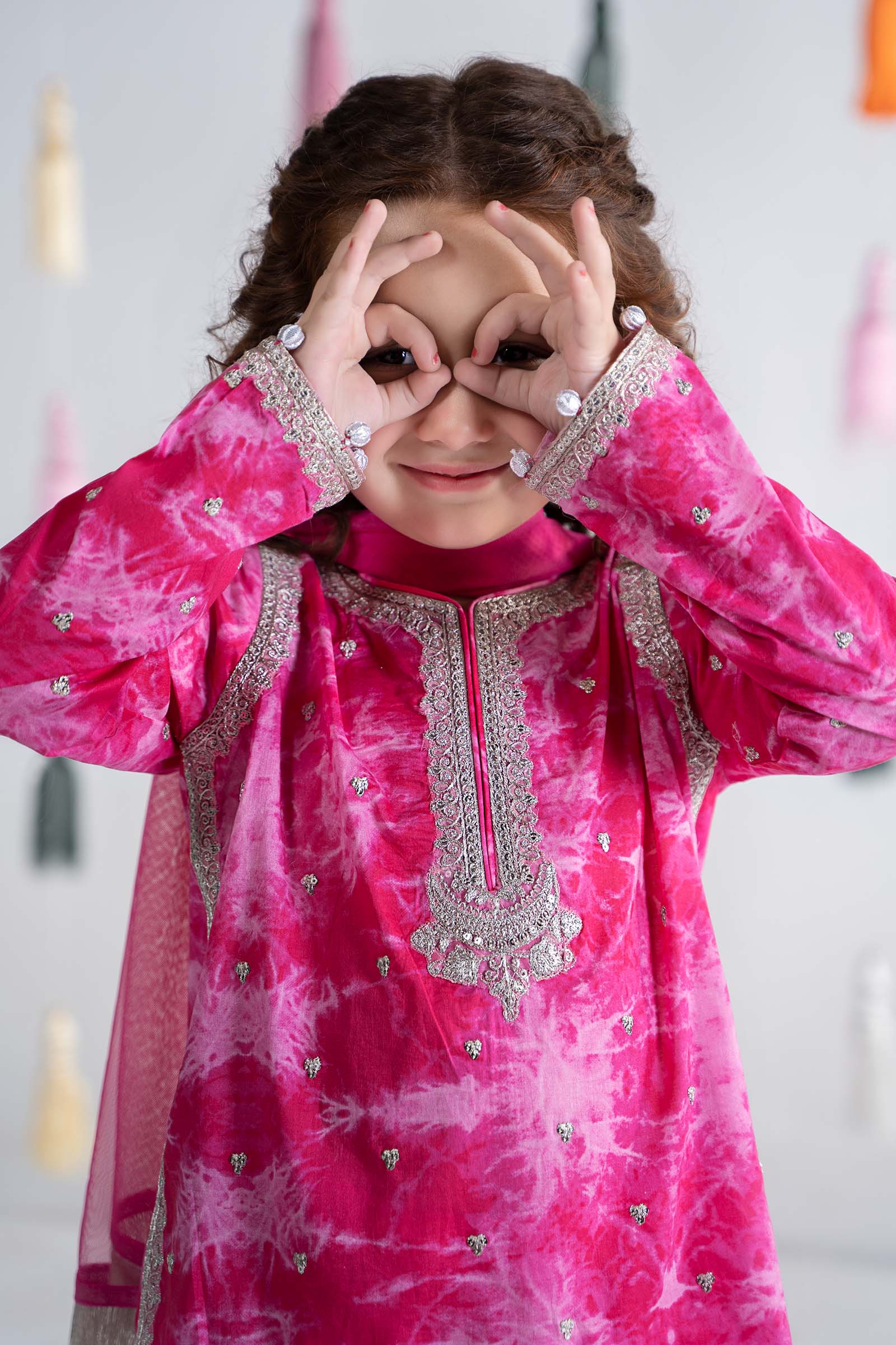 Shirt Straight Cut ShirtEmbroidered Round NecklinePress Button Closure On Back NeckTie Dye Printed Front With Spray EmbroideryEmbroidered Patti On Armhole, Side Seams & BorderRound Hem With Gotta Balls DetailingEmbroidered Full Length Sleeves With Gotta Balls DetailingTie Dye Printed BackFit: RelaxedColor: PinkFabric: LawnTrousersTie-Dye Printed GhararaElasticated WaistbandFit: RelaxedColor: PinkFabric: LawnDupatta Dyed Dupatta Kiran Lace On BordersColor: PinkFabric: NetModel is wearing size 6-8Note: Only Dry Clean