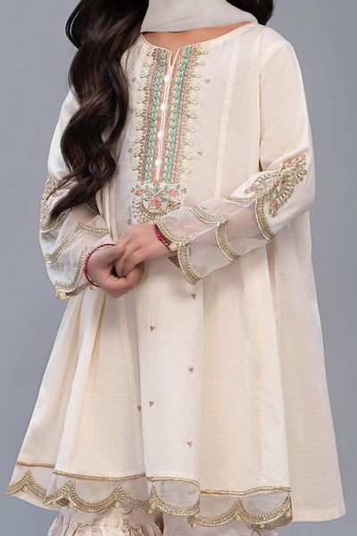 Embroidered shirt paired with printed gharara and matching dupatta.