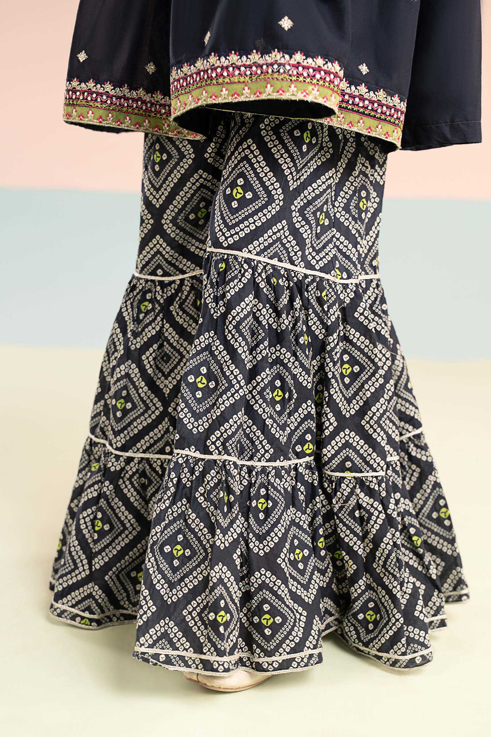 AngrakhaSleeveless Spray Embroidered AngrakhaEmbroidered Neckline With Tassel DetailingEmbroidered ArmholeEmbroidered Border With Gotta Lace DetailingColor: Dull BlueFabric: LawnGhararaPrinted Three-Tier Gharara With Gotta Lace DetailingElasticated WaistbandColor: Dull BlueFabric: CambricDupattaSolid DupattaFour-Side Gotta-Laced BorderColor: GreenFabric: ChiffonWork Details: Sequin, Tilla & Thread EmbroideryModel is wearing 6-8 sizeDisclaimer: Separate sleeves included.Note: Dry Clean Only