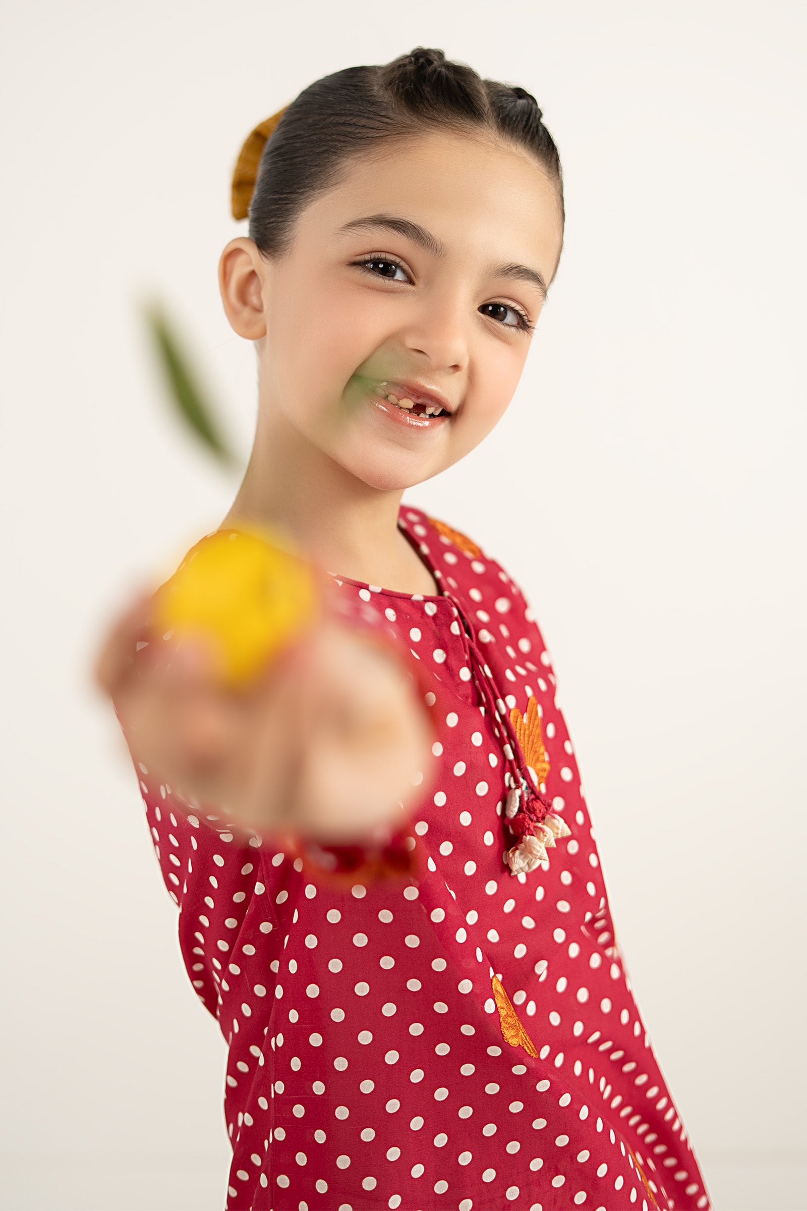 ShirtPrinted Shirt With EmbroideryRound Neck With Shell-Tassel DetailingEmbroidered Scalloped Side Seams & HemPrinted Sleeves With Embroidered Scalloped BorderColor: RedFabric: LawnShalwar Printed ShalwarElasticated WaistbandColor: WhiteFabric: CambricModel is wearing 6-8 sizeNote: Dry Clean Only