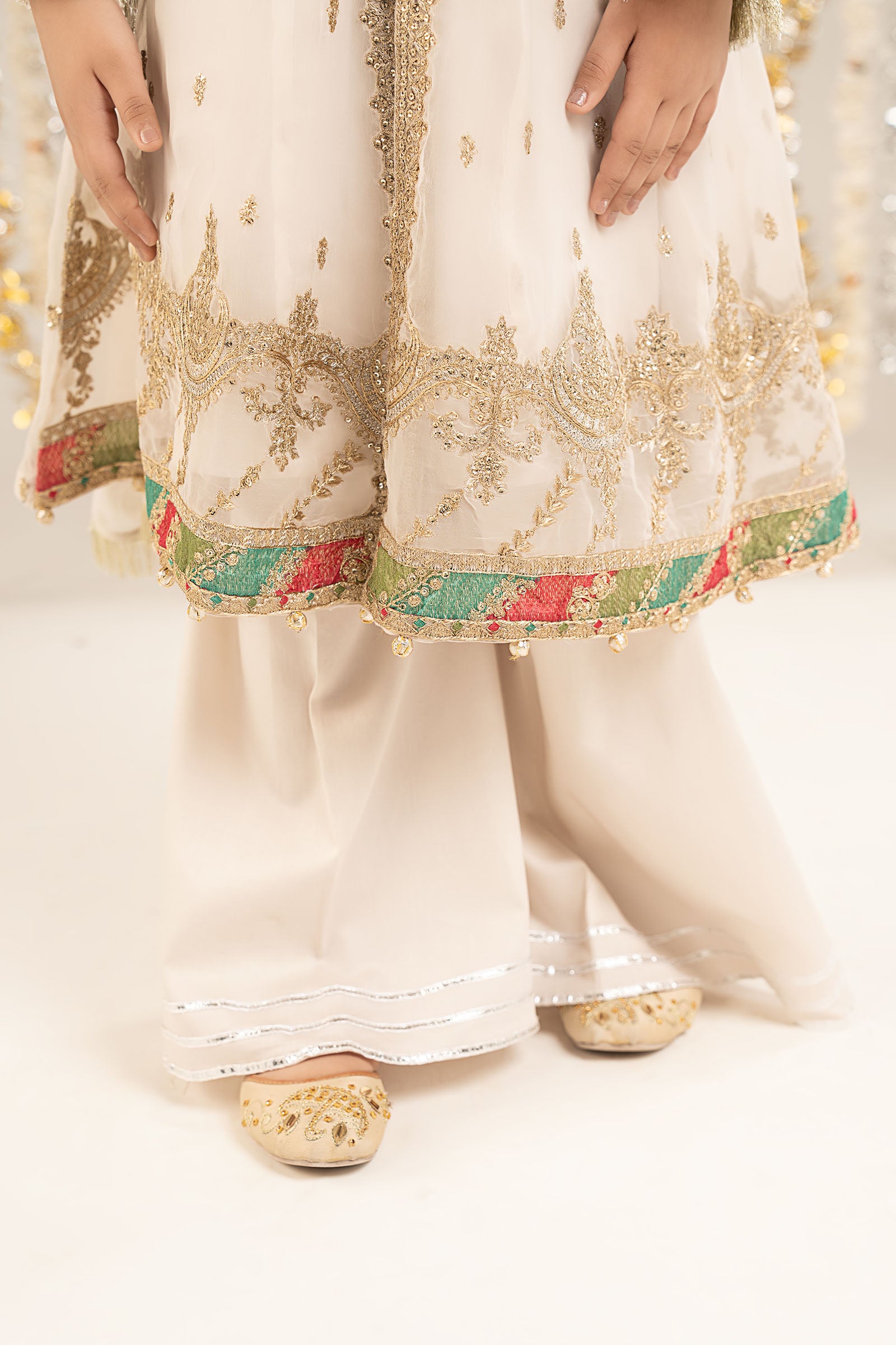 2 PieceShirt fabric: Poly OrganzaTrouser fabric: SatinEmbroidered frock featuring overall embroidery paired with dhaka pajama