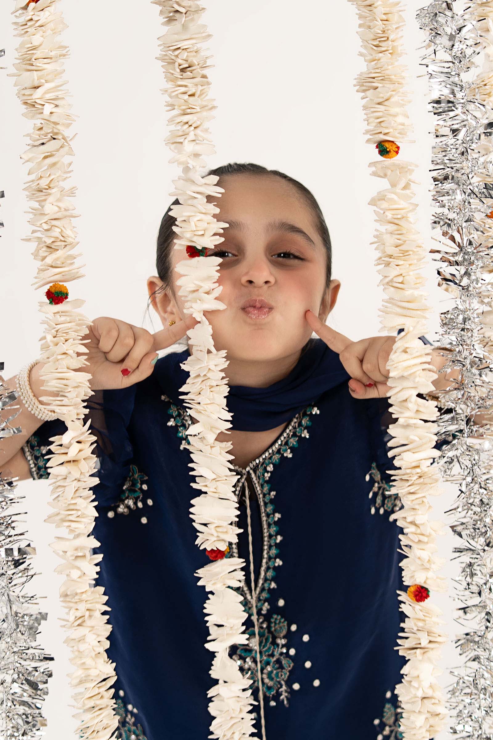 ShirtEmbroidered ShirtEmbroidered Neckline With Tassel DetailingRound HemPuffed Sleeves With Embroidered BorderSleeveless Resham Cotton Undershirt (Attached)Color: Royal BlueFabric: OrganzaShalwarFarshi ShalwarElasticated WaistbandColor: Royal BlueFabric: Raw SilkDupattaSolid DupattaContrast BorderColor: Light & Royal BlueFabric: ChiffonWork Details: Sequin, Tilla & Thread EmbroideryModel is wearing 6-8 sizeNote: Dry Clean Only
