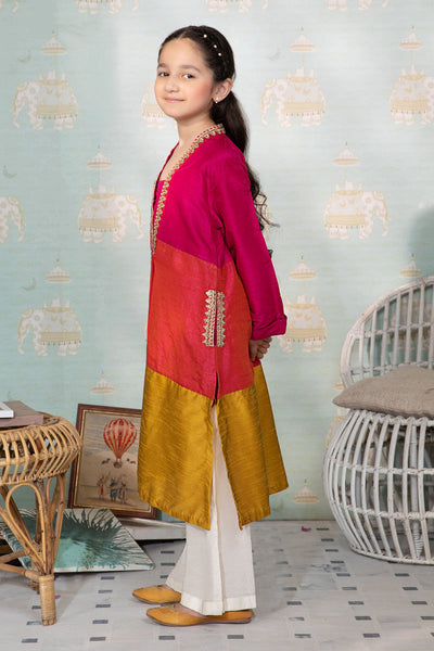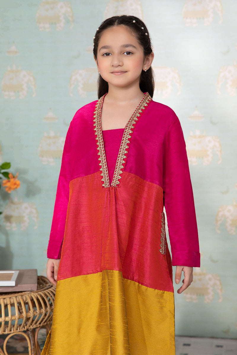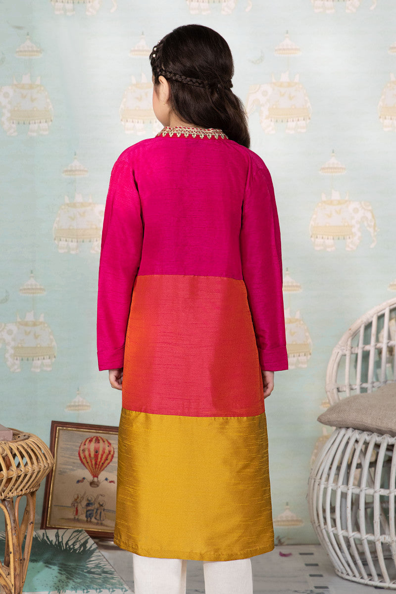 Color block embroidered raw silk A-line shirt featuring side pockets
