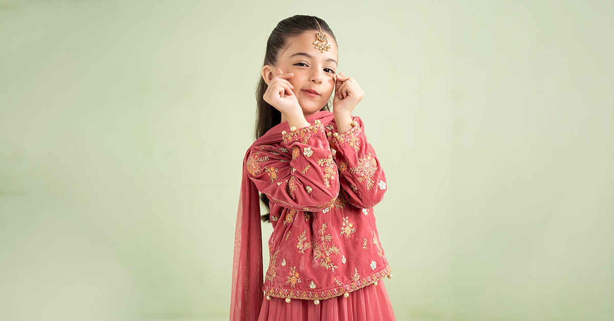 CholiEmbroidered CholiRound NecklineEmbroidered Straight SleevesGotta Balls Drop Detailing On Sleeves & BorderDyed Resham Cotton Sleeveless Lining (Attached)Fit: RegularColor: PinkFabric: VelvetLehengaDyed Lehenga With Tassel DetailingElasticated Waistband Dyed Resham Cotton Lining (Attached)Fit: RegularColor: PinkFabric: NetDupattaDyed DupattaTwo-Side Kiran Lace BorderColor: PinkFabric: ChiffonWork Details: Sequins, Tilla & Thread EmbroideryModel is wearing 6-8 sizeNote: Dry Clean Only