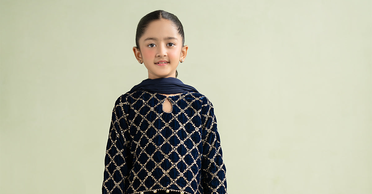BlouseEmbroidered BlouseKeyhole Neckline With Gotta Lace DetailingGotta Lace & Balls Drop Detailing On Border On BorderEmbroidered Sleeves With Gotta Lace & Balls Drop Detailing On BorderFit: RegularColor: Navy Blue Fabric: VelvetLehengaSpray Embroidered LehengaElasticated Waistband With Tassel DetailingEmbroidered Border With Gotta Patti & Balls Drop DetailingFit: RegularColor: Navy Blue Fabric: VelvetDupatta Dyed DupattaTwo-Side Kiran Lace BorderColor: Navy Blue Fabric: ChiffonWork Details: Sequin & Tilla EmbroideryModel is wearing 6-8 sizeNote: Dry Clean Only