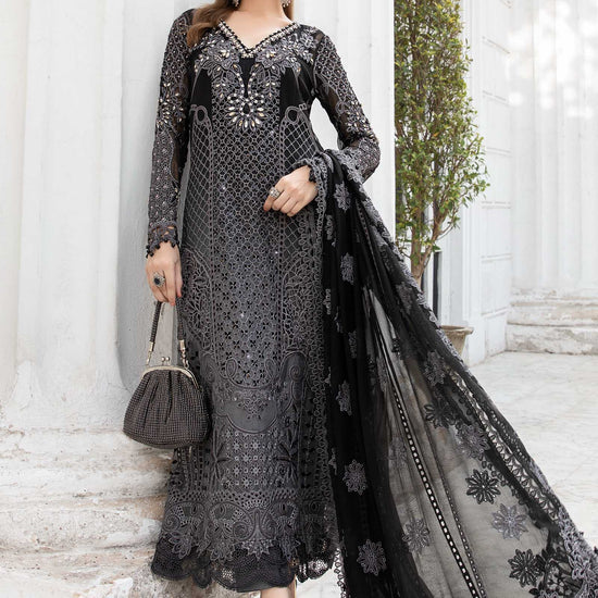 ShirtEmbroidered Organza Neck Patch With Hand EmbellishmentEmbroidered Front Center PanelEmbroidered Side Panel R+LEmbroidered Side Panel Patches R+LEmbroidered Organza Ghera Patch 1Embroidered Organza Ghera Patti 2Embroidered Sleeves With Hand EmbellishmentEmbroidered Organza Sleeves PattiPrinted BackFabric: ChiffonUndershirtPrinted UndershirtFabric: Cotton SatinDupattaEmbroidered DupattaEmbroidered Organza Dupatta PattiEmbroidered Organza Dupatta Pallu PatchFabric: ChiffonTrousersDyed TrousersFabric: Cotton SatinColor: BlackNote: Dry Clean Only