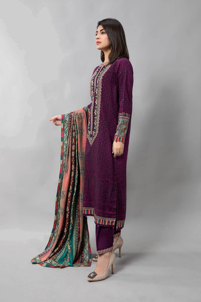 Printed Khaddar Straight Shirt with Embroidered Neckline and Hem