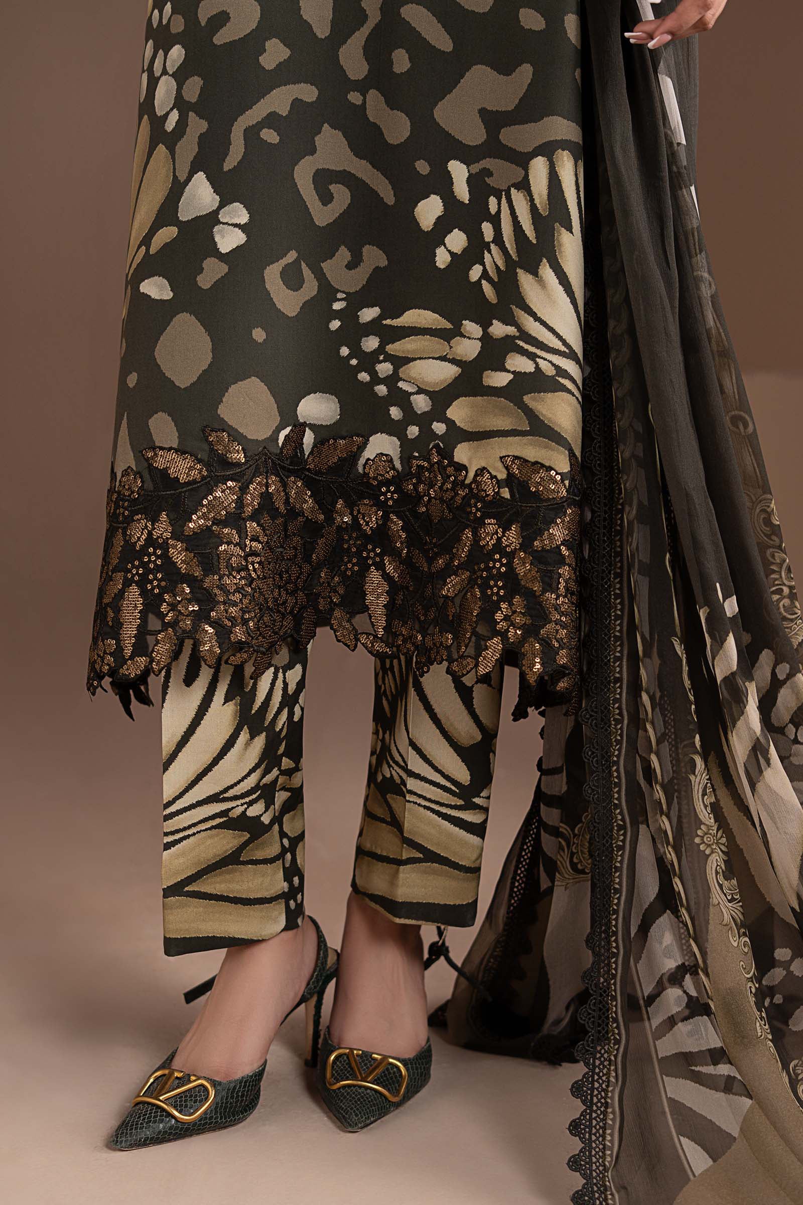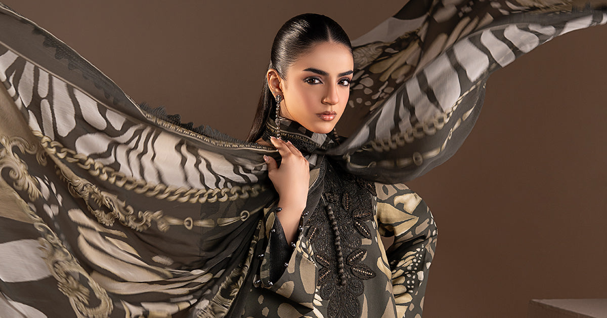 3D Embroidered Neckline With Buttons & Pearls Detailing