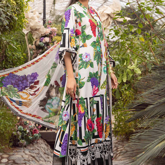 Shirt Printed Lawn Shirt Embroidered Patti 1 Embroidered Lawn PatchesTrousers Printed Cambric TrouserDupatta Printed Chiffon Dupatta Color: White