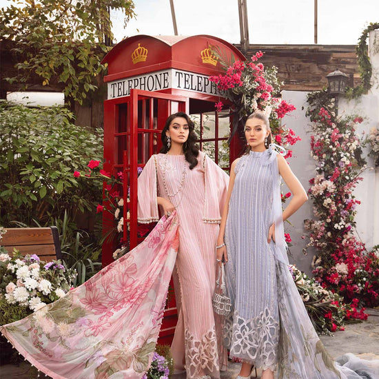 Shirt Yarn Dyed Shirt Embroidered Patch Embroidered 3D Flowers Embroidered Ghera PattiTrousersDyed Cambric TrouserDupatta Printed Chiffon Dupatta Color: Pink