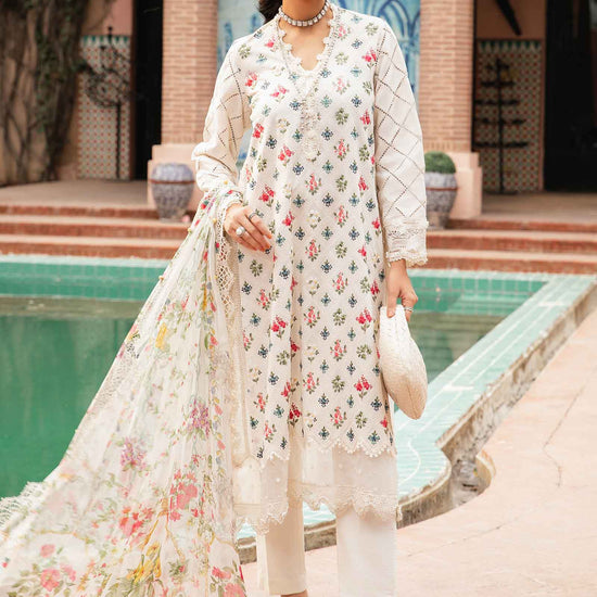 ShirtEmbroidered FrontDyed Back & SleevesColor: WhiteFabric: LawnTrousersDyed TrouserColor: WhiteFabric: CambricDupattaPrinted DupattaColor: WhiteFabric: Chiffon