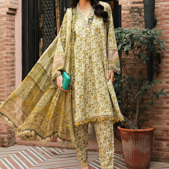 ShirtPrinted Embroidered FrontEmbroidered Organza PattiPrinted Back & SleevesColor: Off WhiteFabric: LawnTrousersPrinted TrouserColor: Off WhiteFabric: CambricDupattaPrinted DupattaColor: Off WhiteFabric: Chiffon