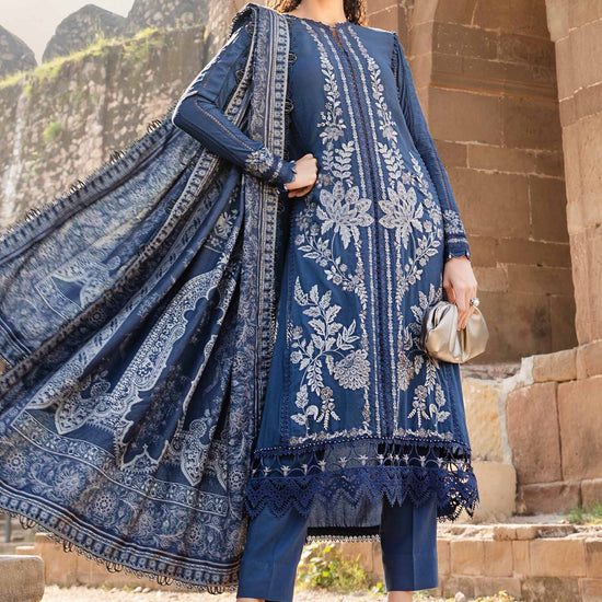 ShirtEmbroidered Right & Left PanelEmbroidered SleevesDyed Front Side Panels & BackColor: Navy BlueFabric: LinenTrouserDyed TrouserColor: Navy BlueFabric: LinenShawlPrinted ShawlColor: Navy BlueFabric: HerringboneNote: Dry Clean Only