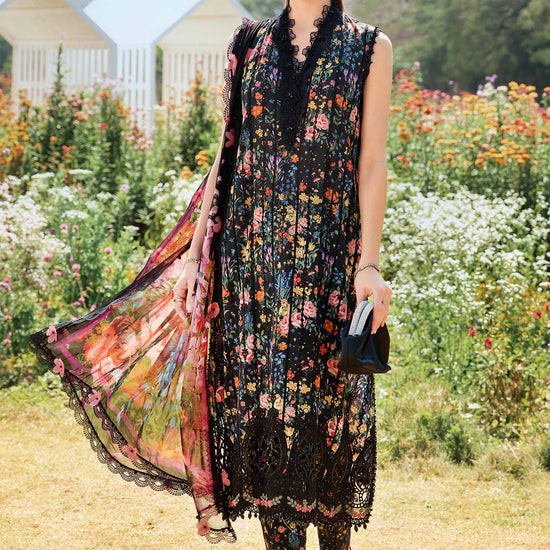 ShirtPrinted Embroidered FrontPrinted Back & SleevesOrganza Embroidered PattiFabric: LawnColor: BlackTrousersPrinted TrouserFabric: CambricColor: BlackDupattaPrinted DupattaFabric: ChiffonColor: BlackNote: Dry Clean Only