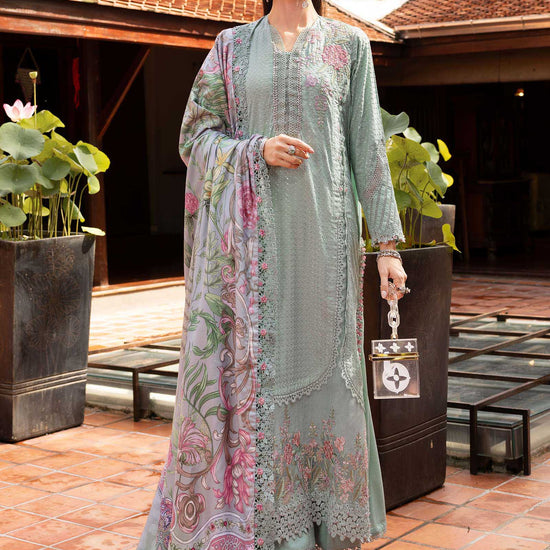 Color: Light Sea GreenShirtEmbroidered Twill Linen Front & SleevesEmbroidered Organza Front PatchEmbroidered Organza PattiDyed Twill Linen BackTrouserDyed Linen TrouserShawlPrinted Wool ShawlNote: Dry Clean Only