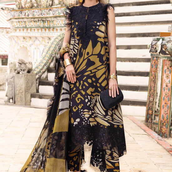 Color: BlackShirtEmbroidered Organza Neck Patch & 3D FlowersPrinted Linen ShirtEmbroidered Organza PattiTrouserPrinted Linen TrouserDupattaPrinted Chiffon DupattaNote: Dry Clean Only