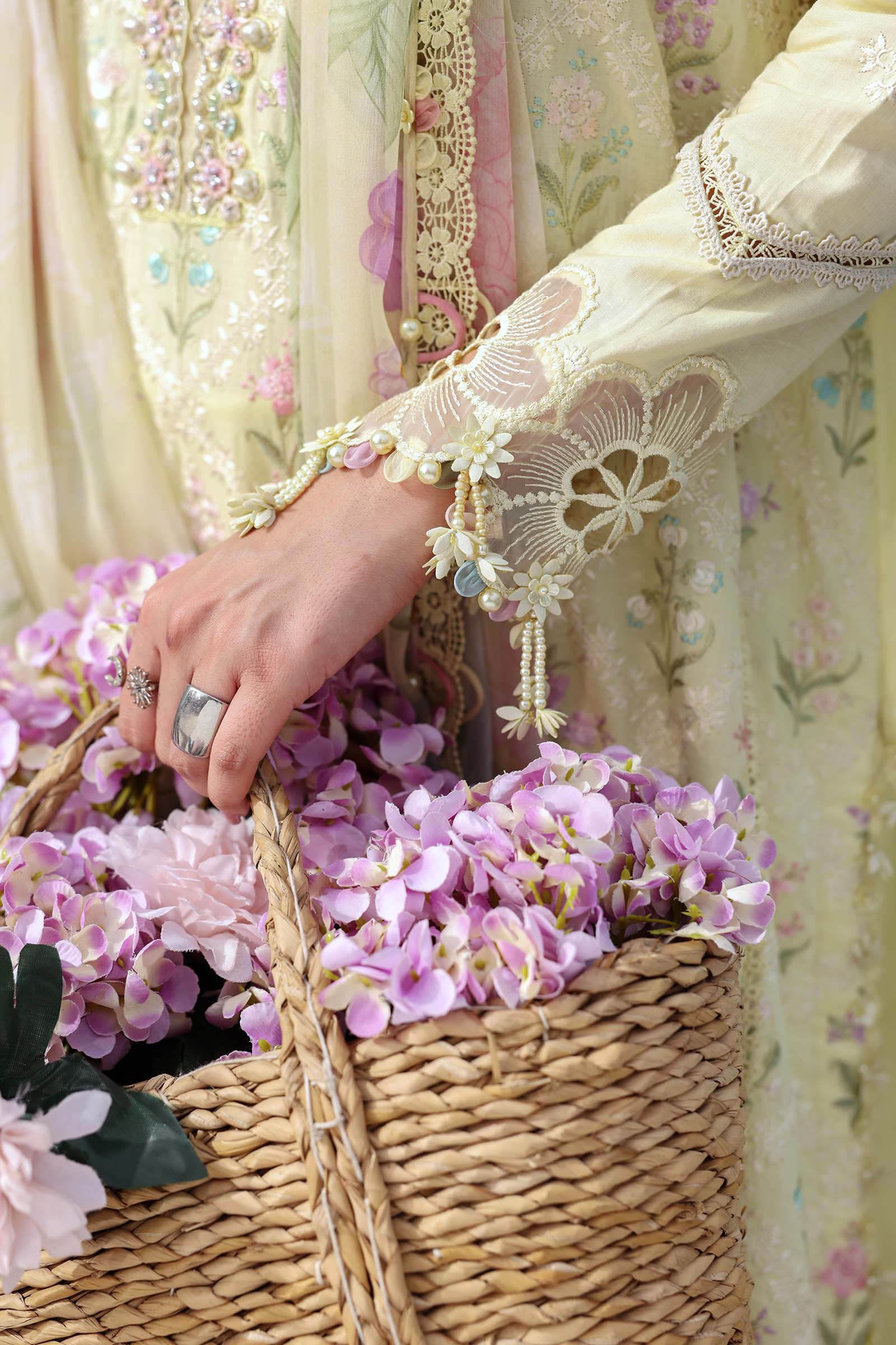 Color: YellowShirtEmbroidered Lawn FrontEmbroidered Lawn SleevesDyed Lawn BackTrouserDyed Cambric TrouserDupattaPrinted Chiffon DupattaNote: Dry Clean Only