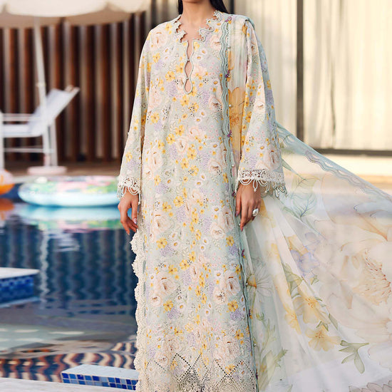 Color: Sea GreenShirtEmbroidered Printed Lawn FrontEmbroidered Printed Lawn SleevesPrinted Lawn BackTrouserDyed Cambric TrouserDupattaPrinted Chiffon DupattaNote: Dry Clean Only