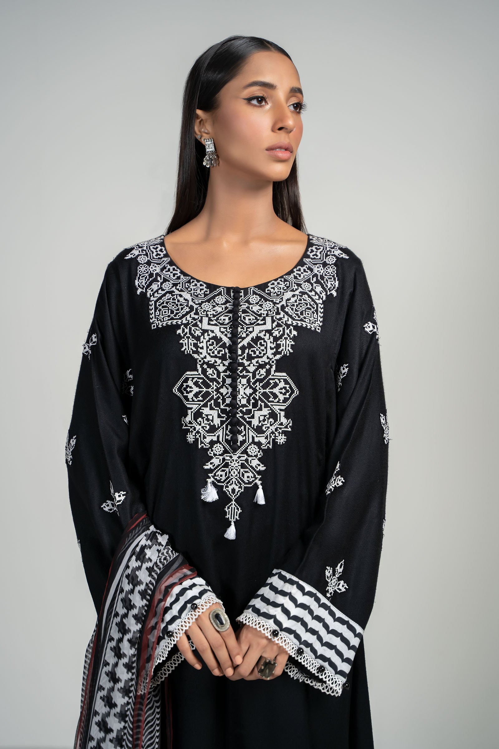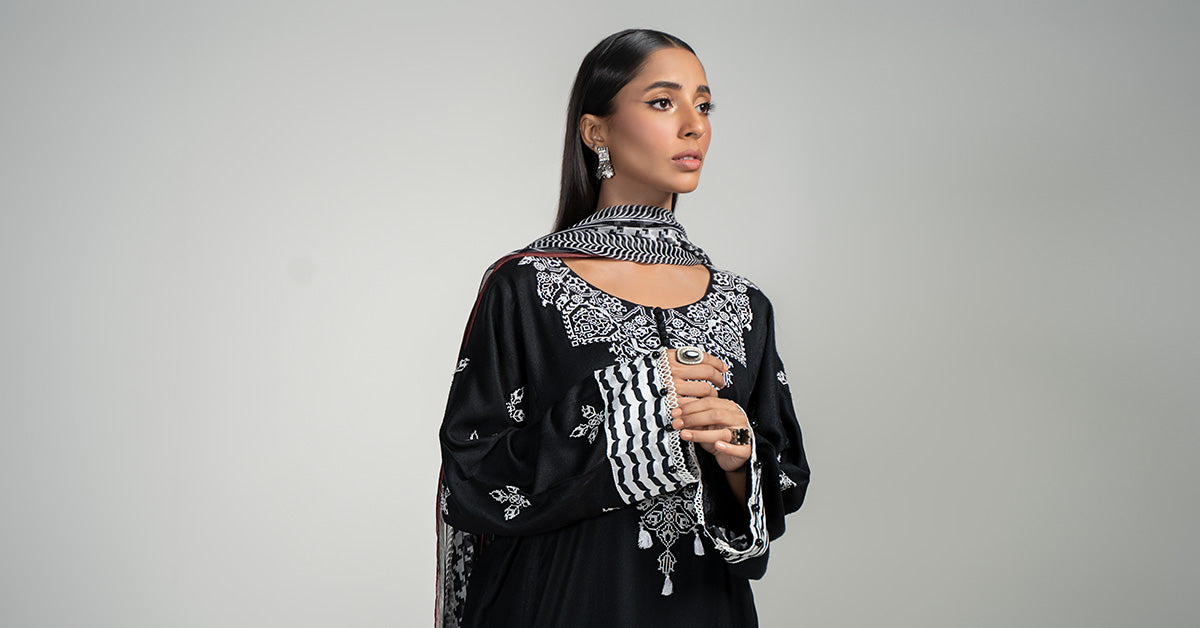 Dyed Long Sleeves With Embroidery, Lace, Pearl & Organza Detailing