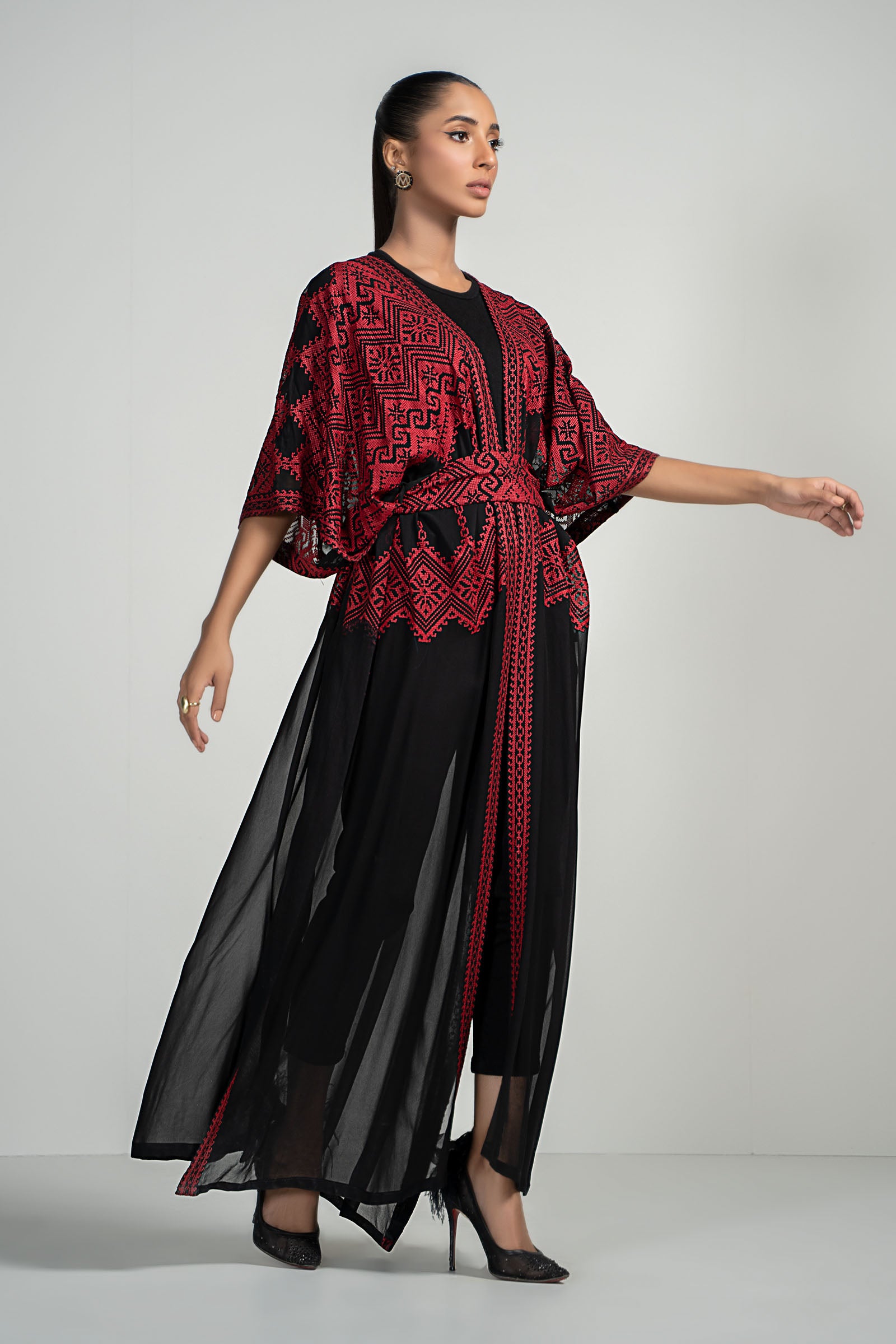 Dyed Embroidered Kaftan With Embroidered Belt