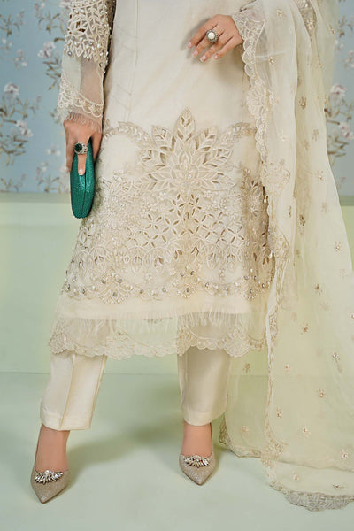 Cutwork Embroidered Front Border With Stone, Pearl & Frayed Organza Detailing