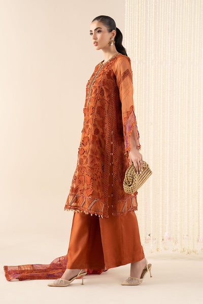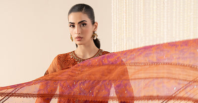 Dyed Pleated Sleeves With Lace Detailing & Printed Embroidered Border