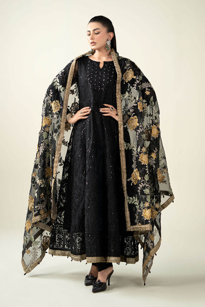 Organza fully embroidered frock with embroidered sleeves Cotton satin straight pant.