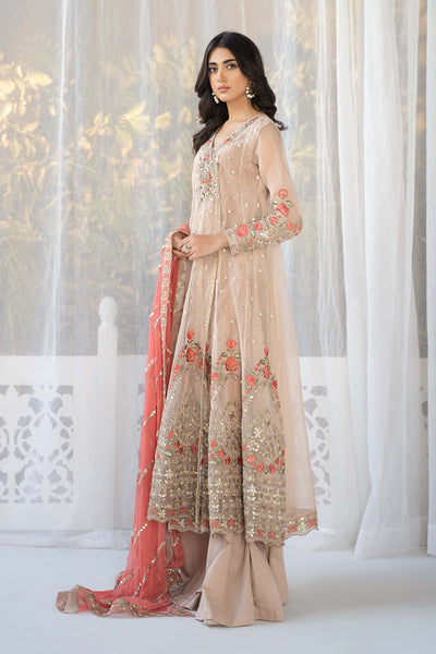 With eccentric floral imagery, our three-piece embroidered organza suit is a sight to behold, showcasing a pink angrakha weaving festoons with lustrous sequins, tilla, and threads, elevated with gorgeous panni work. Adding to its grace, it comes paired with tonal dhaka trousers and a majestic embroidered dupatta graced with sequins and tilla embroidery, making it an effortless choice to uplift the spirits.