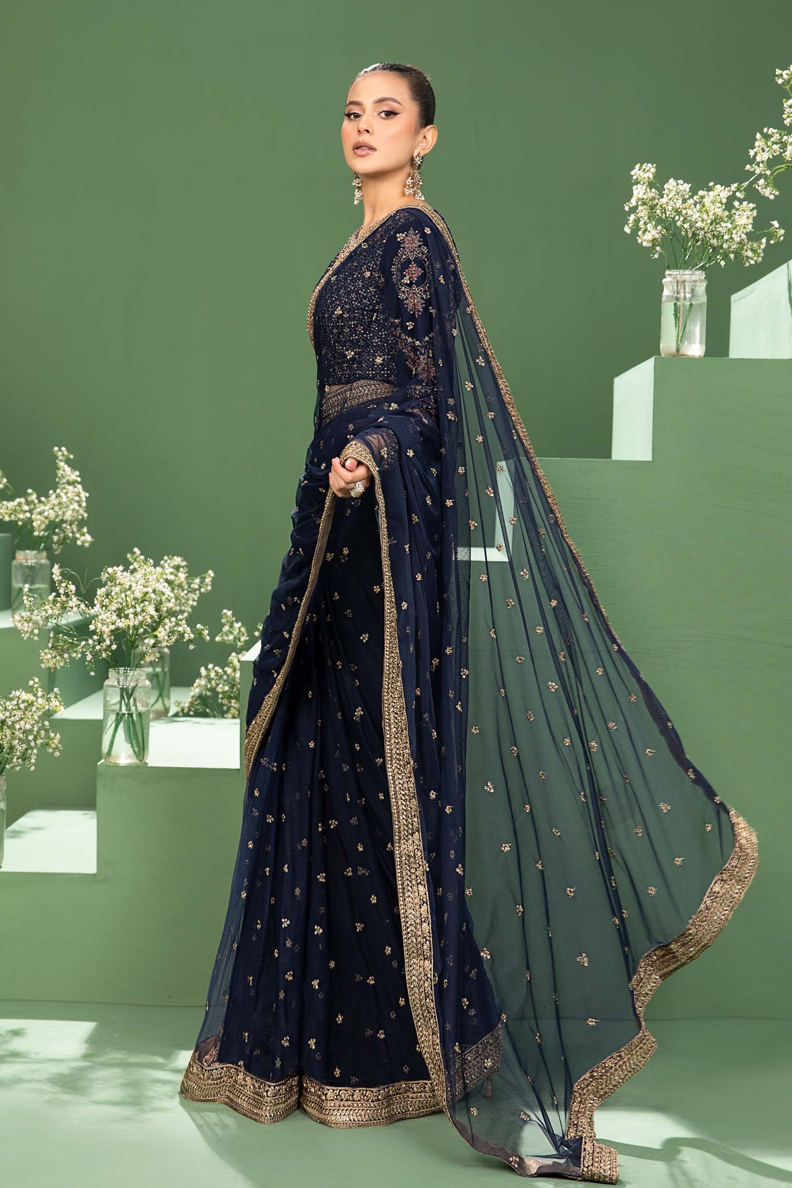 3 Piece Embroidered Net Saree