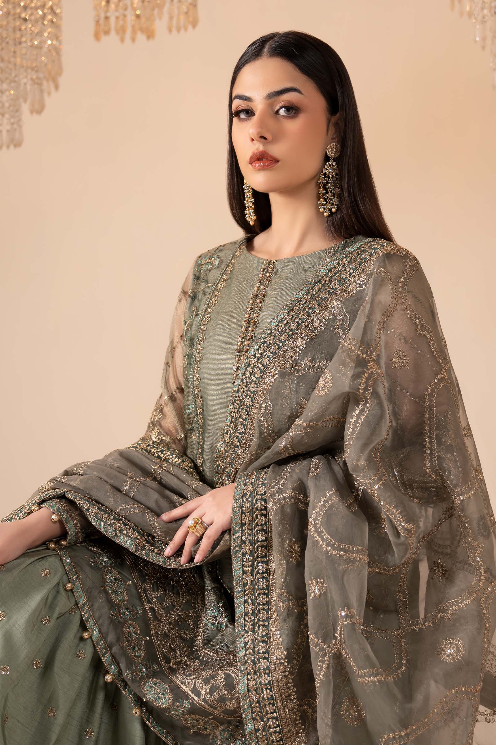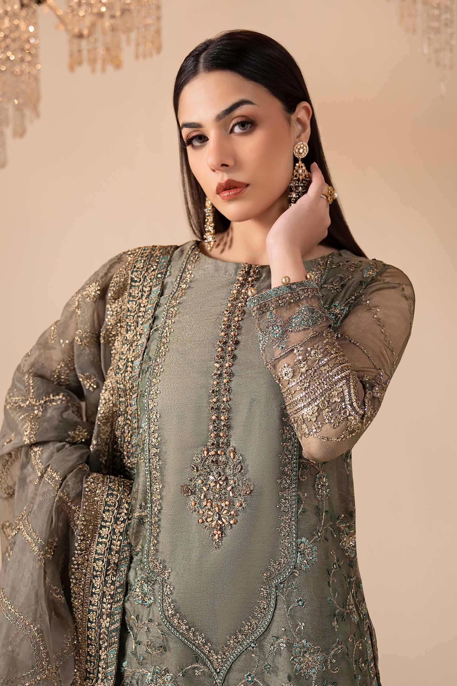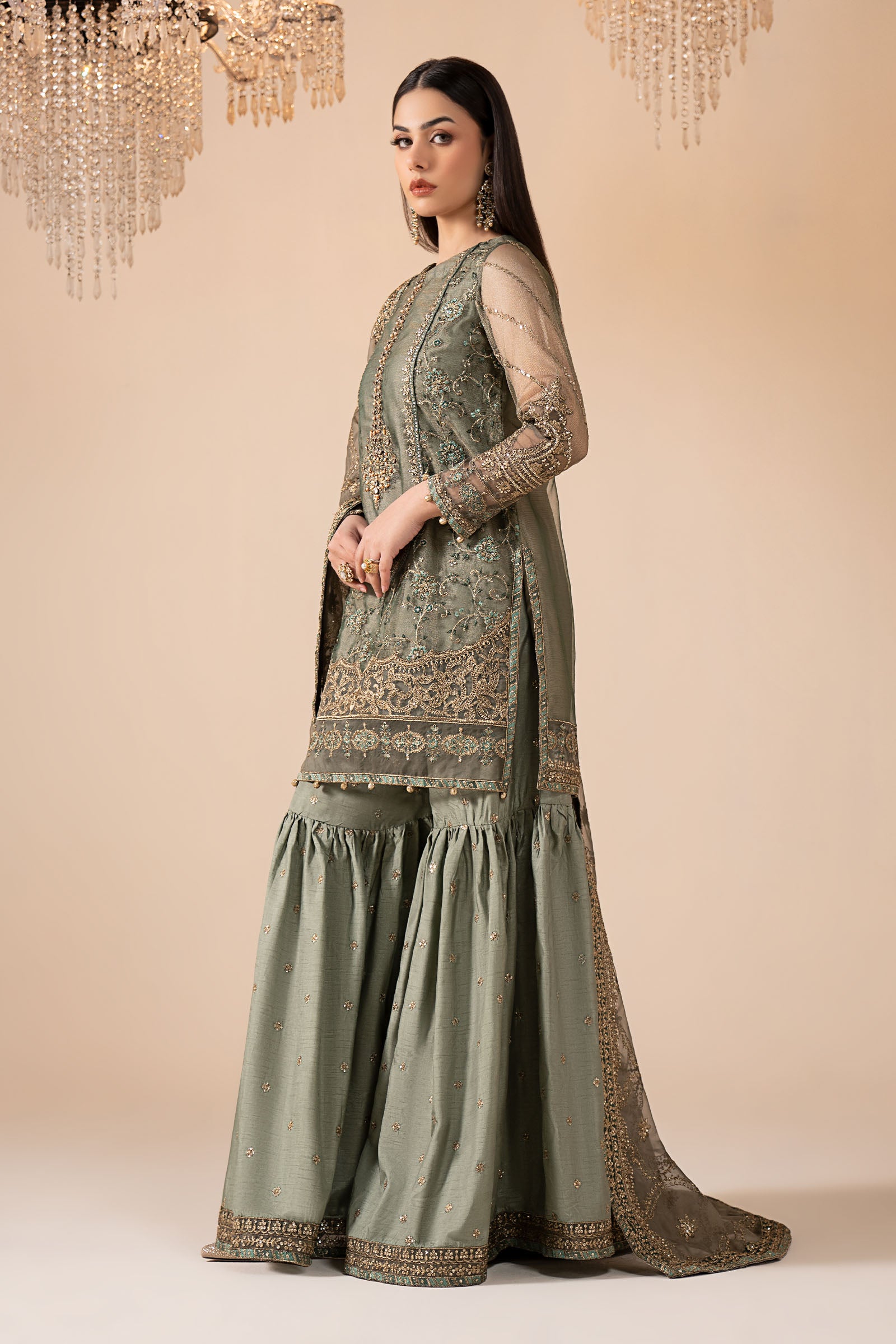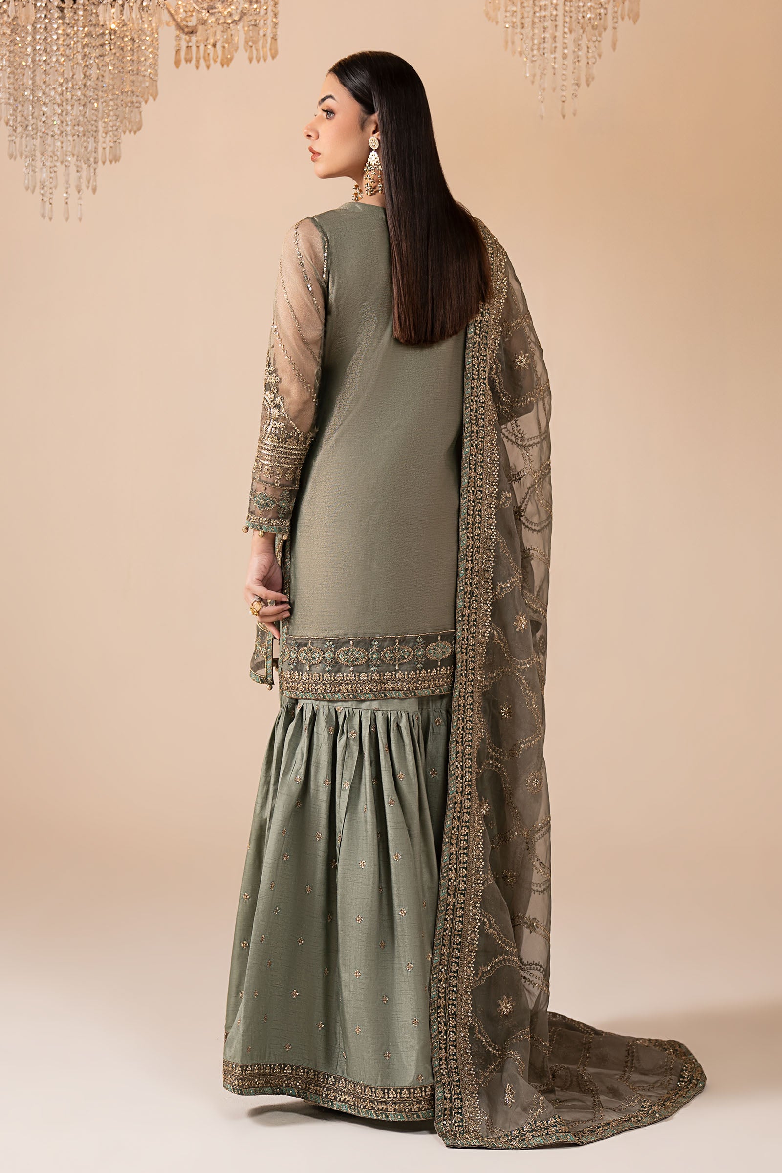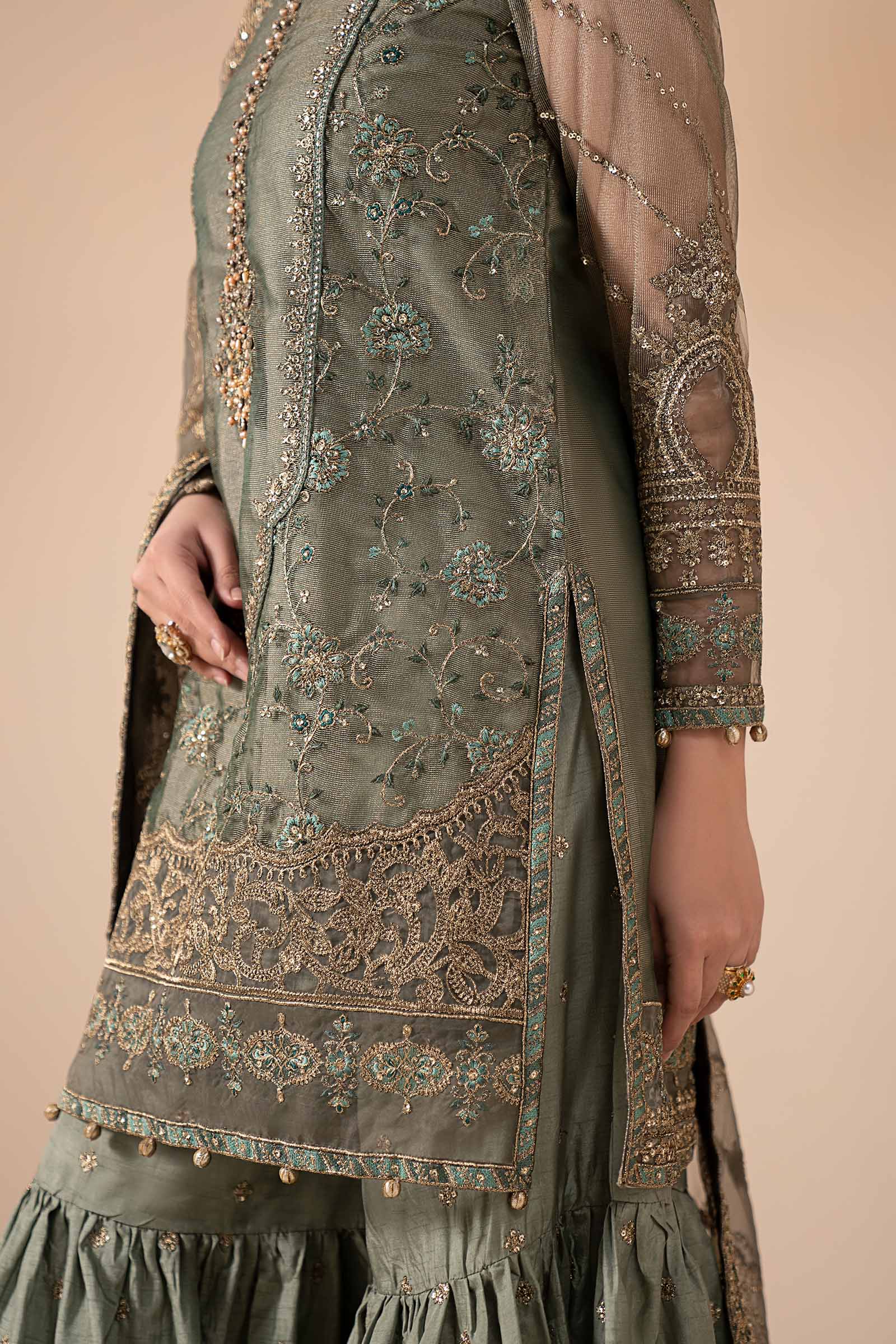 Work Details: Sequins, Thread & Tilla Embroidery With Crystals, Beads & Gotta Balls Detailing