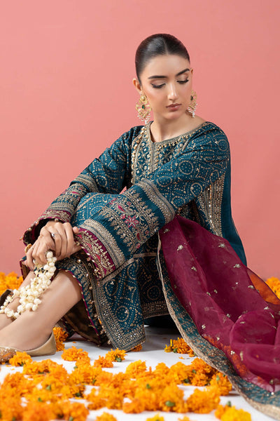 Gotta & Crystal Drop Detailing On Sleeves & Border