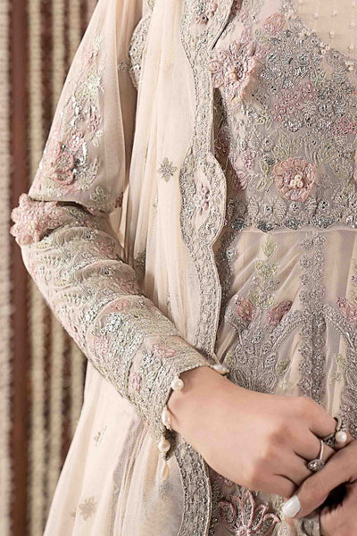 3D Flowers Embroidered Sleeves With Crystal & Pearls Handwork