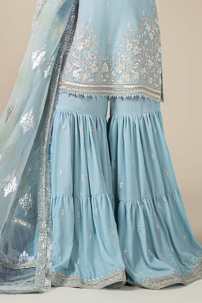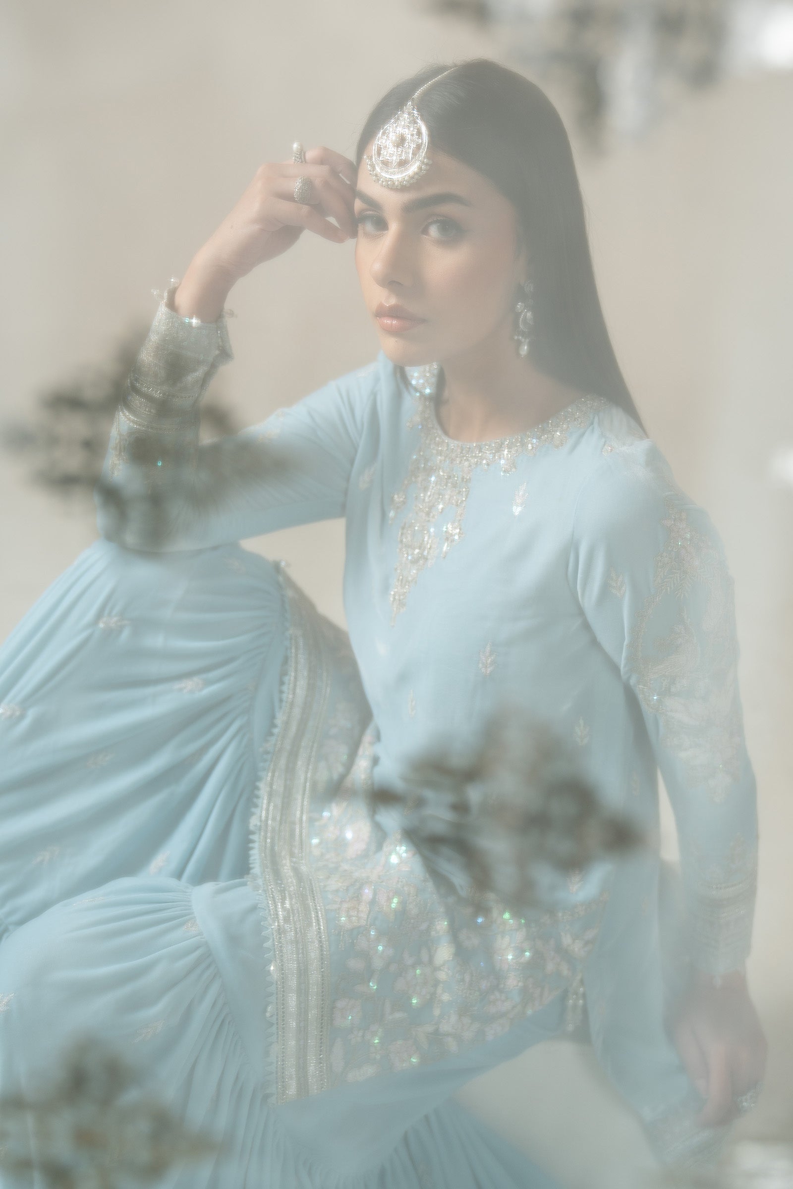 Embroidered Sleeves With Motif & Crystal Pearl Drop Detailing On Border