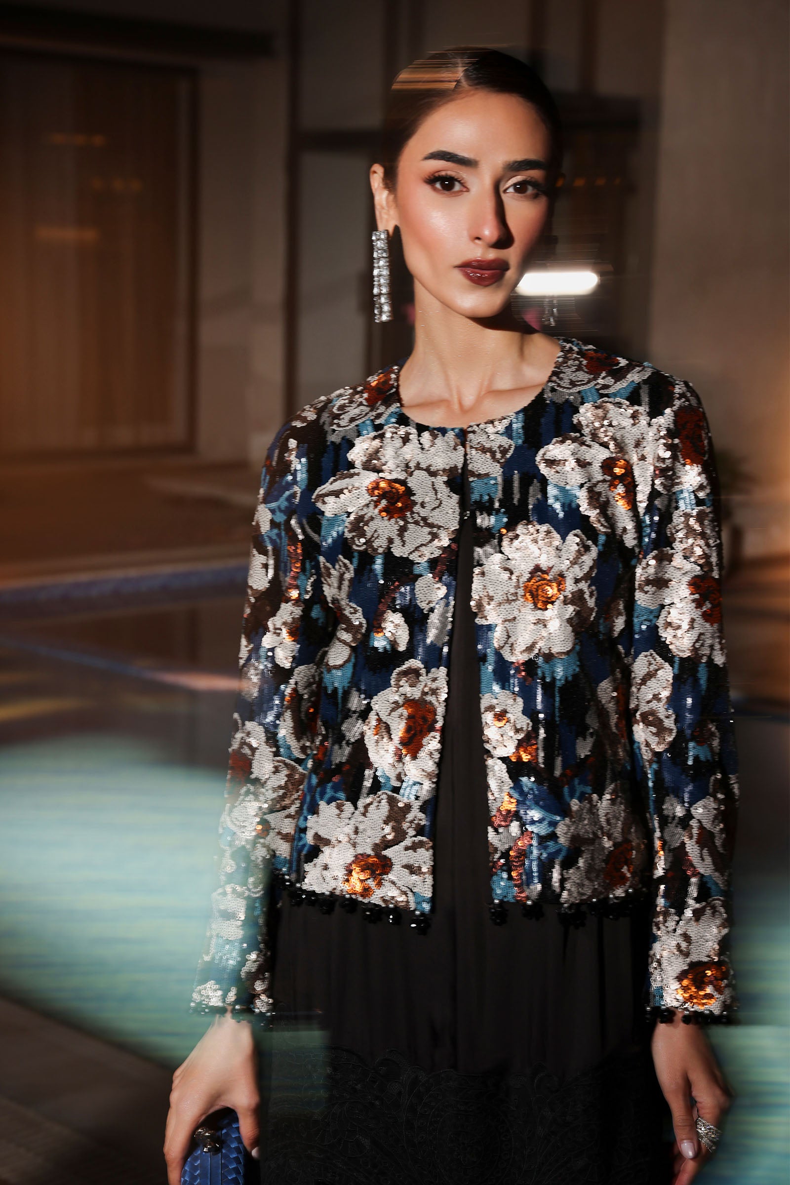 JacketSequin-Embellished JacketSequin-Embellished SleevesColor: BlackFabric: NetShirtSleeveless UndershirtKavya Embroidered Border With HangingColor: BlackFabric: Satin SilkTrouserSolid Harem PantsElasticated WaistbandColor: BlackFabric: Satin SilkWork Details: Sequin & Thread EmbroideryModel is wearing xs sizeNote: Dry Clean Only