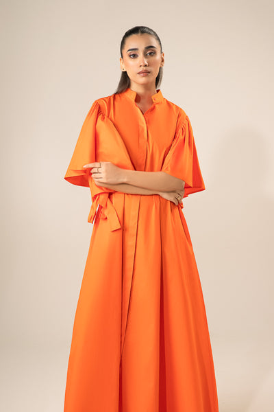 Details: Long Button Down Dress With Flutter Sleeves & Belt