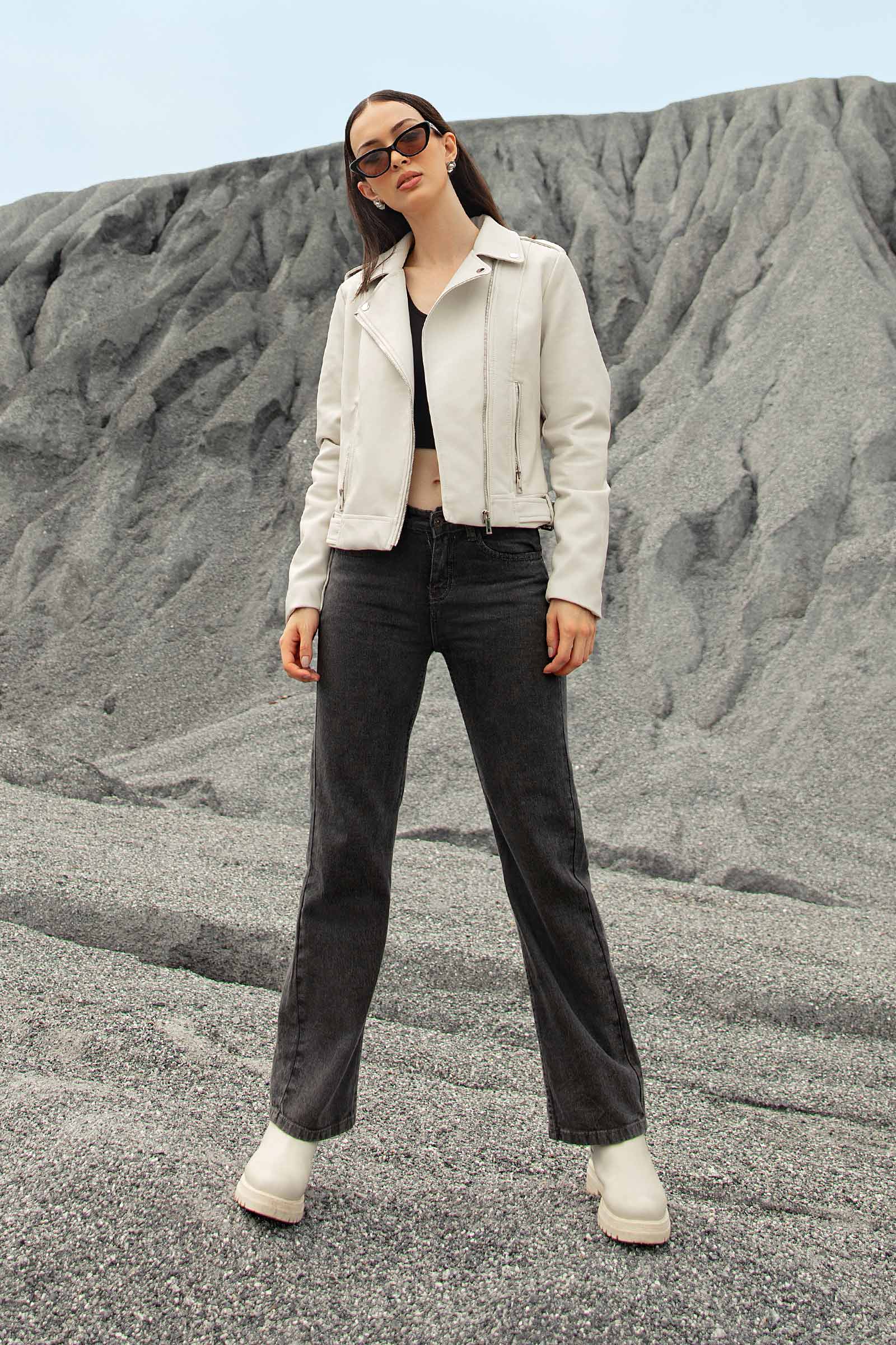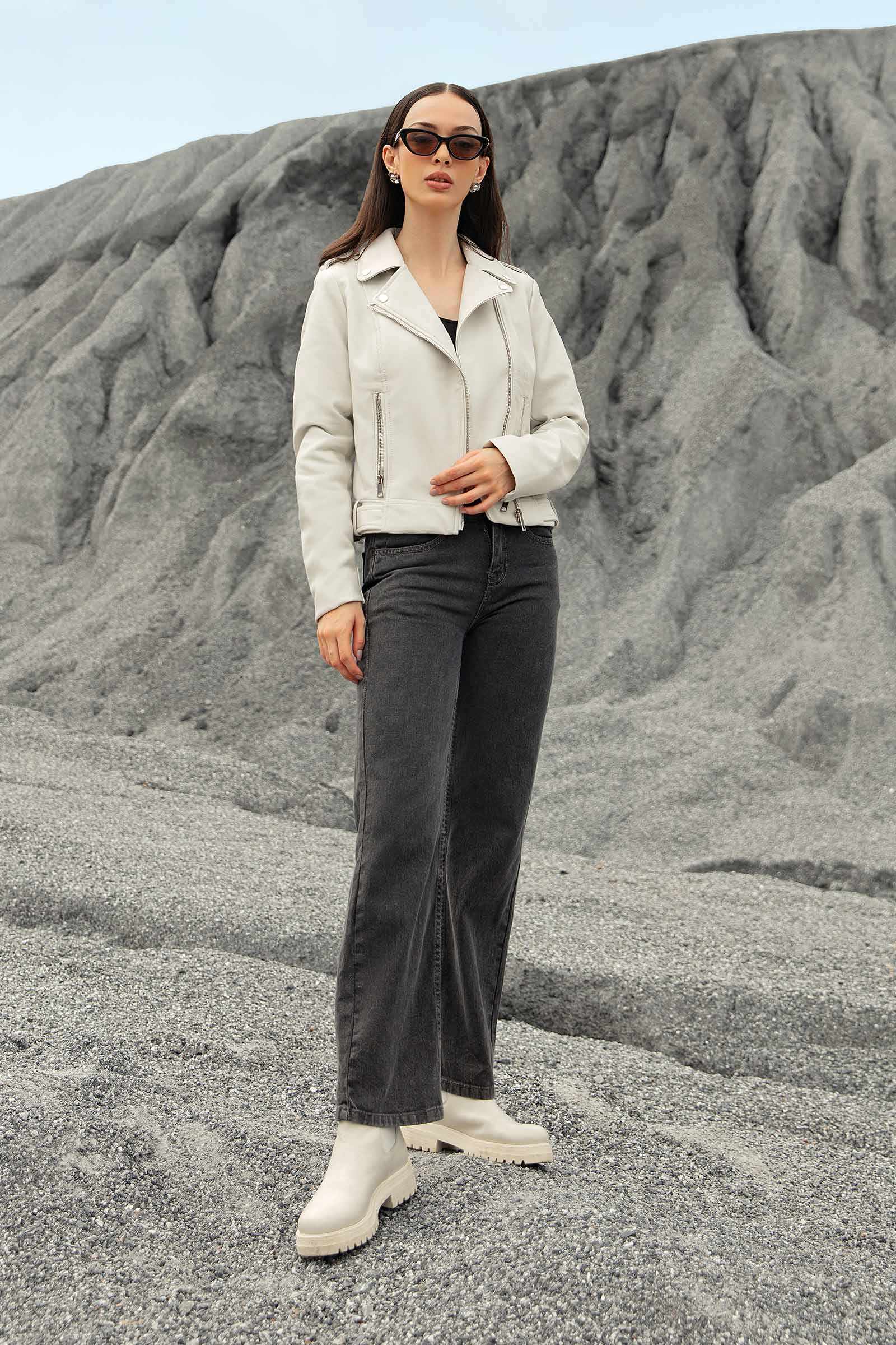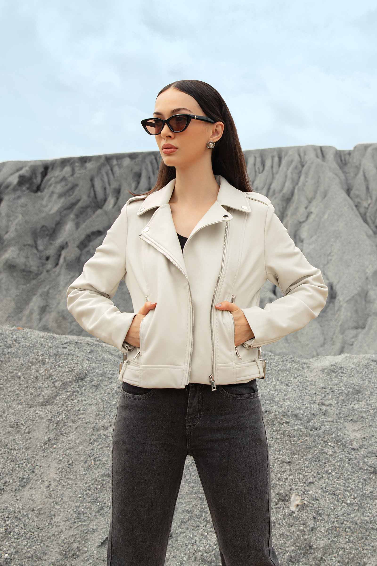 Elevate your outerwear game with our stylish and versatile Biker Jacket. This contemporary piece features a contemporary closure with front pockets. It is a perfect fusion of fashion and functionality. Details Material: Leather Color: White & Black