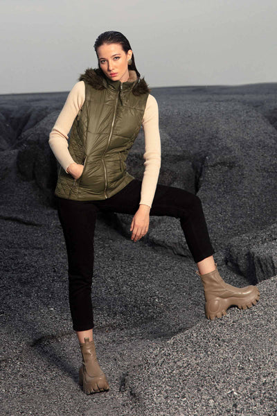 Made from lightweight and durable parachute, this sleeveless puffer jacket is your go-to option to stay on-trend and cozy.