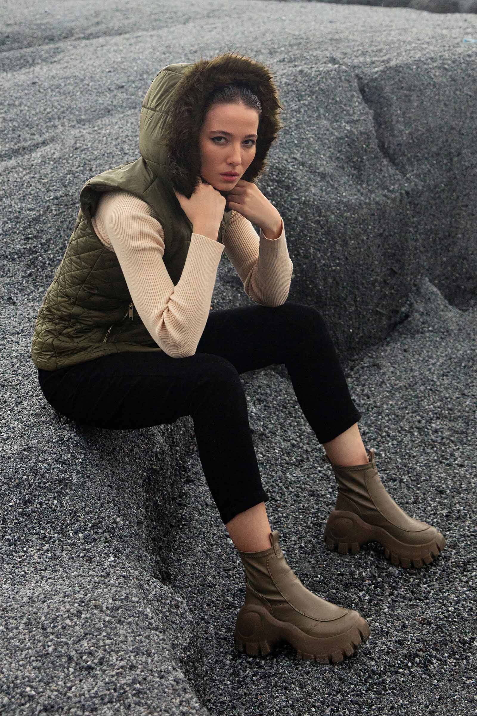 Made from lightweight and durable parachute, this sleeveless puffer jacket is your go-to option to stay on-trend and cozy. Details Material: Parachute Color: Gold & Green