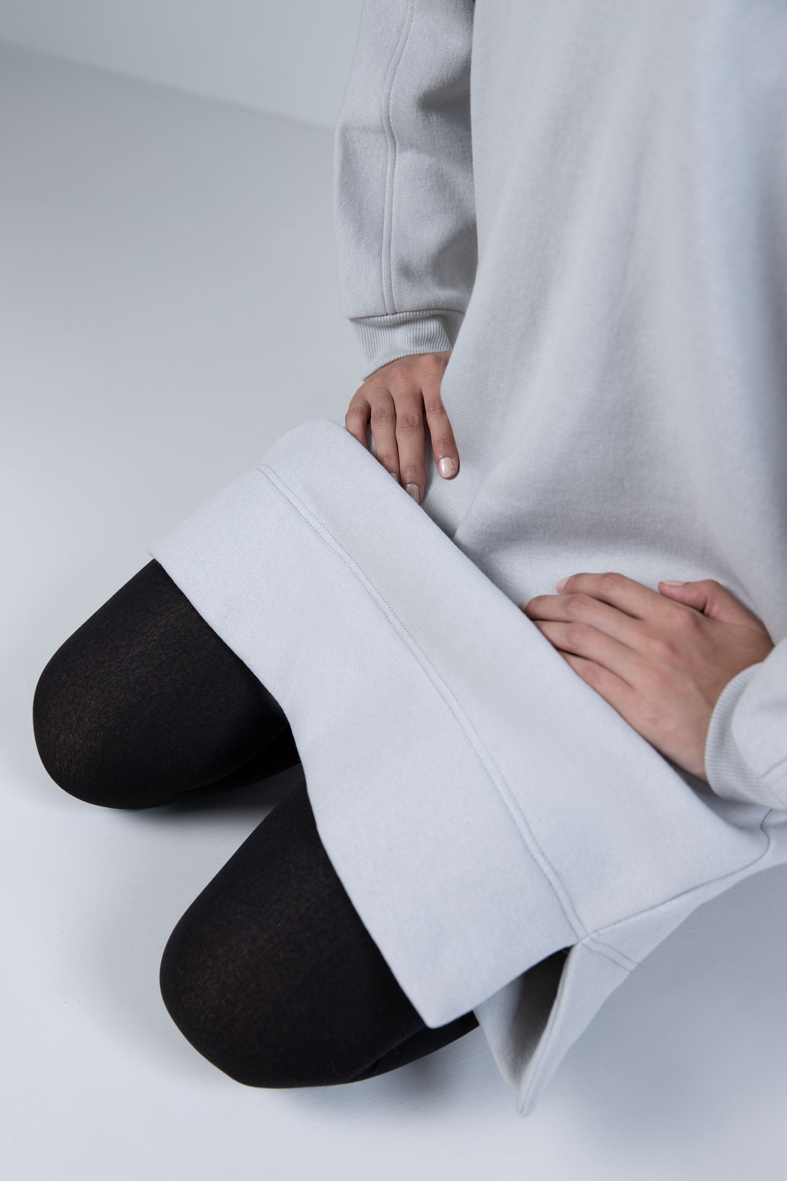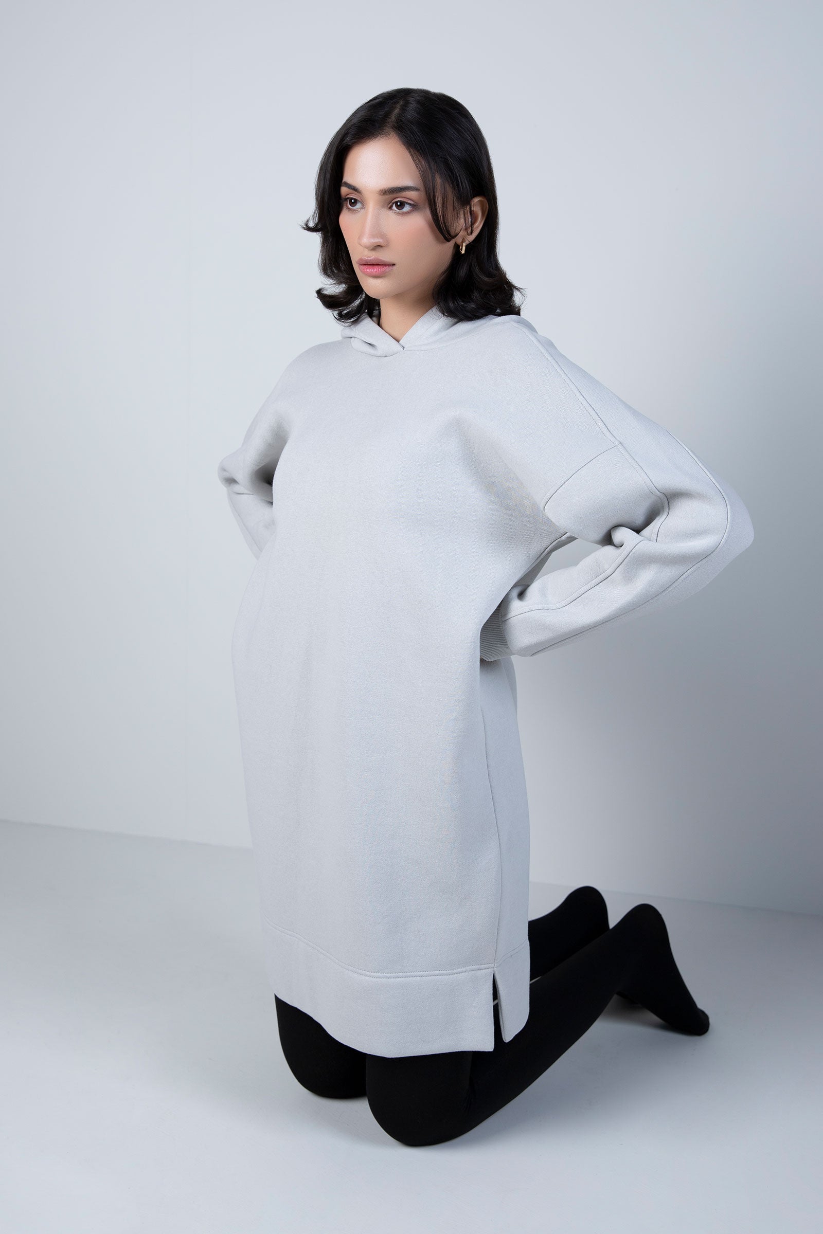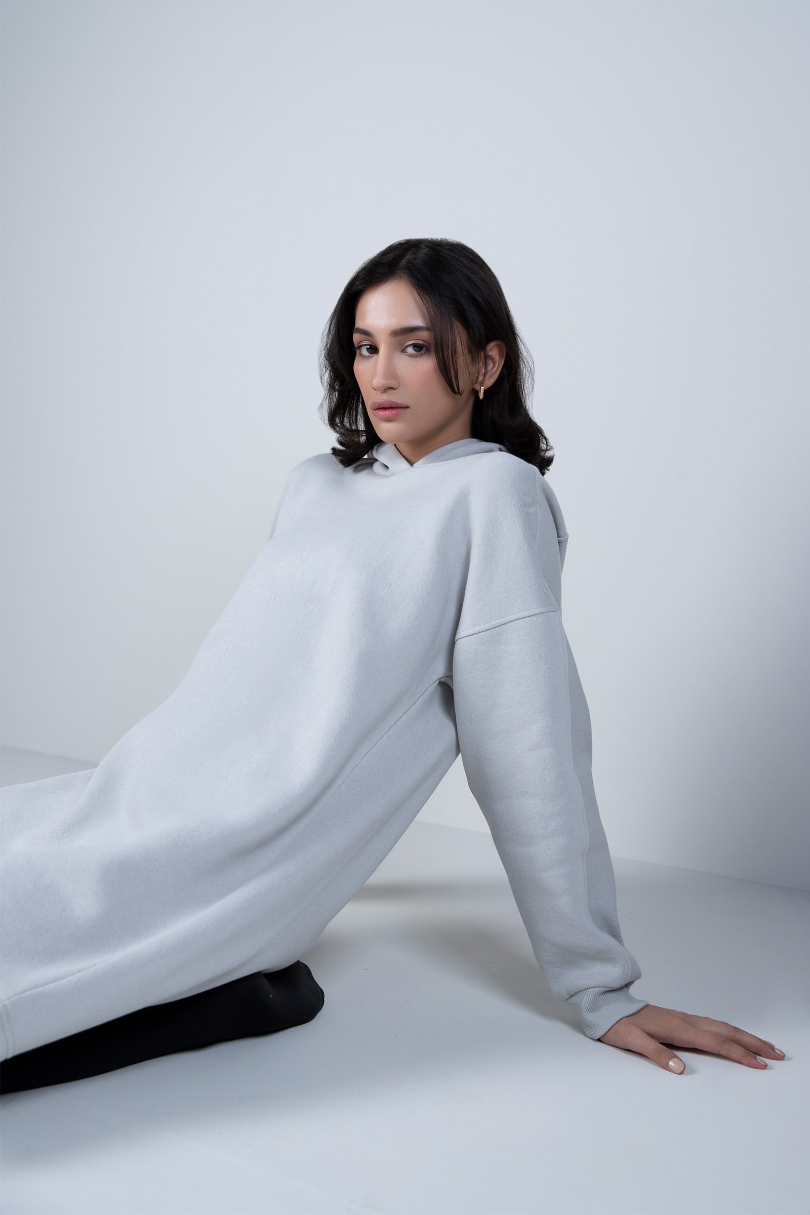 Drop Shoulder Hoodie With Long Cuffed SleevesMaterial: FleeceColor: Light GreyStretch: LowFit Type: RelaxedSize: The model is wearing size xsNoteDry Clean OnlyDo Not BleachIron On Medium Heat Settings
