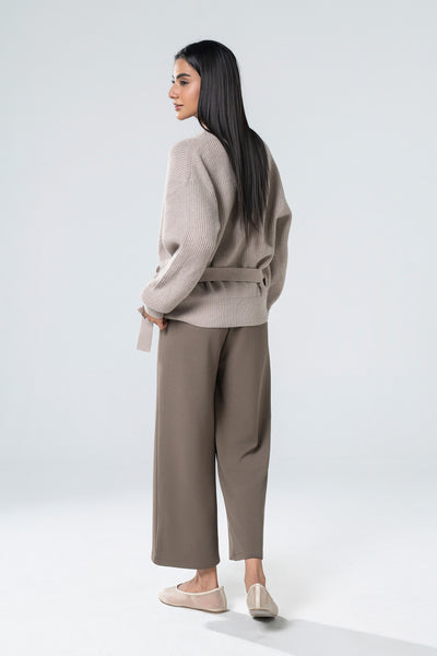 Relaxed-Fit Long-Sleeve Sweater With Front-Tie Detail, Ribbed Neckline & Hem.