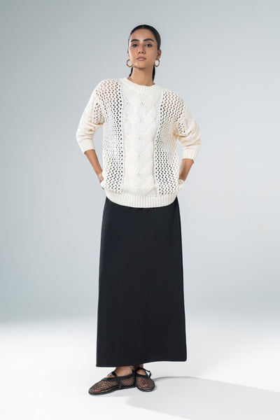 Cable-Knit Sweater With Slightly Dropped Shoulders, Long Sleeves, Ribbed Neckline & Hem.