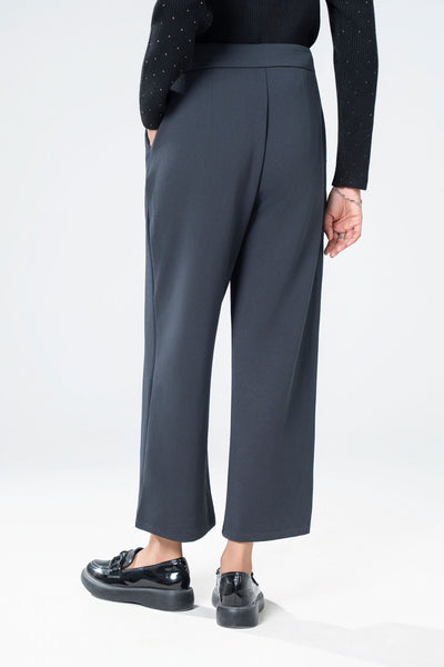Wide-Leg Pants With Cross Pockets & Side Seam Invisible Zipper Opening.