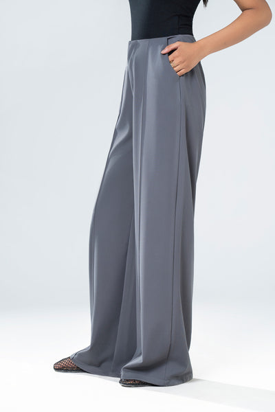 Wide-Leg Pants With Front Fly Zipper Opening, No Waistband & Pin-Tuck Detail.