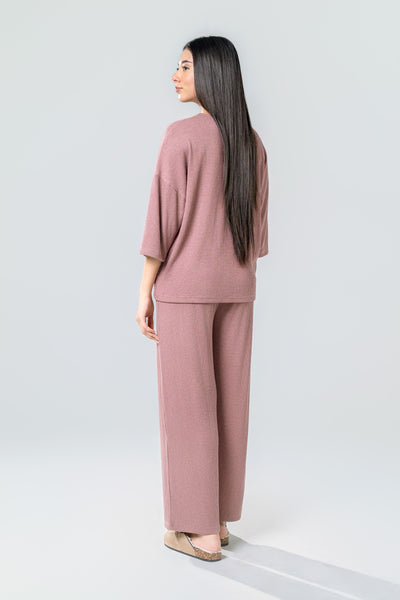Co-ord Set With Round Neck With Short Sleeved Tee, Paired With Wide-Leg Pants.