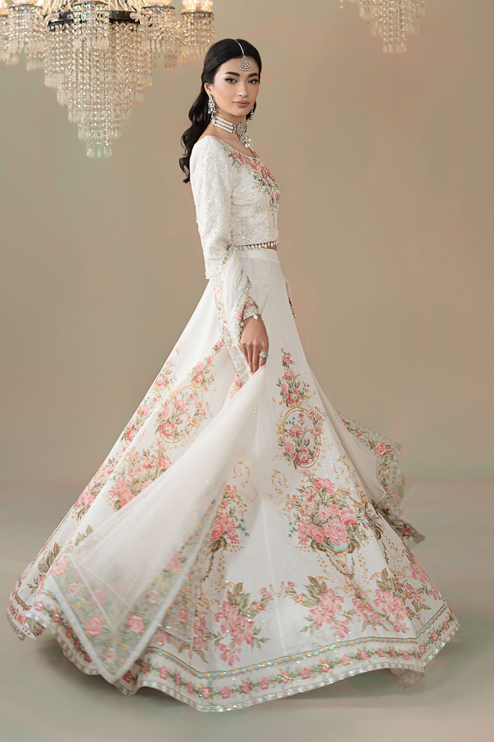 Color: Off -WhiteShirt3D Flowers Embroidered NecklineEmbroidered Sleeves With 3D EmbroidHand-Embellished BorderPearl Detailing On Neckline, Border & SleevesFabric: Raw SilkSkirtPrinted Embroidered SkirtFabric: Raw SilkDupattaEmbroidered DupattaFour-Side Embroidered BorderFabric: NetNote: Dry Clean Only