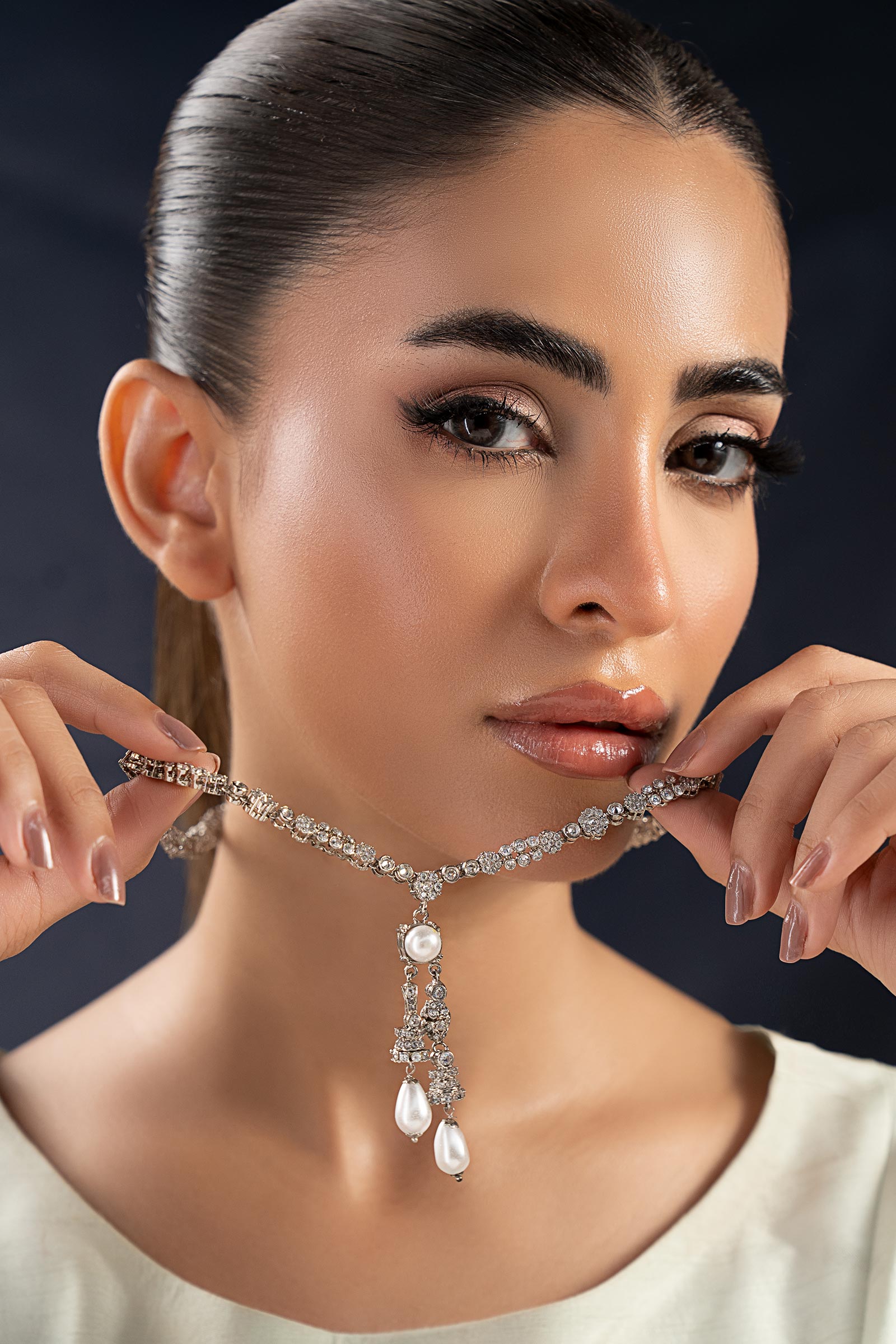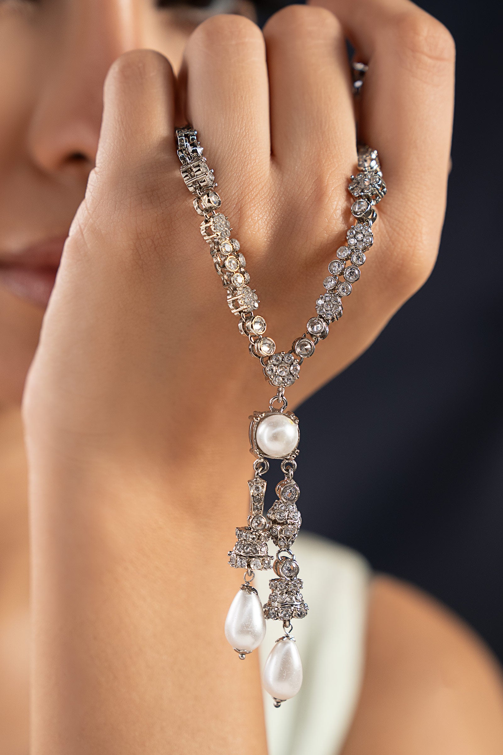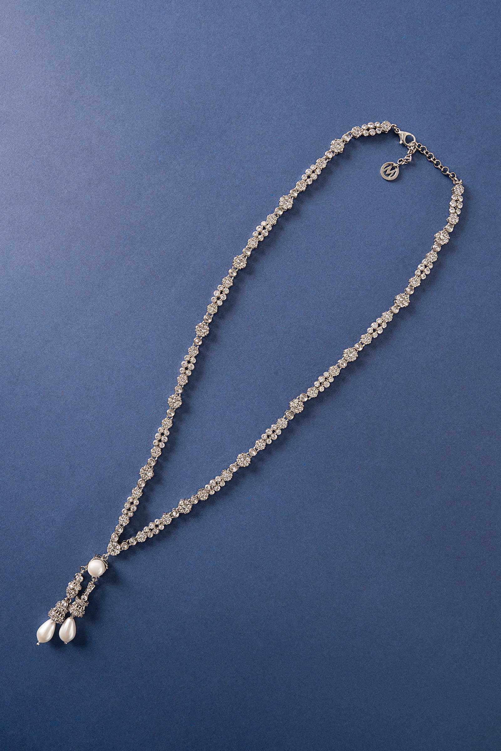 Sleek and sophisticated, this pendant pairs the classic glow of white pearls with the modern sparkle of white zircons. It gives your celebration style a new, sophisticated touch and is ideal for festive gatherings. Finish: Silver Lock: Spring Lock Product Care: Wipe Clean
